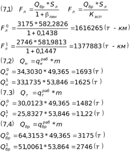 По данным ТАБЛИЦЫ 5,1 определяем величину качественных показателей использования грузовых поездов, поездных грузовых локомотивов и на основании этого заполняем ТАБЛИЦУ 7,1 «Качественные показатели использования грузовых поездов и поездных грузовых локомотивов».