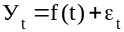 Аналитическое выравнивание . Под этим понимают определение основной проявляющейся во времени тенденции развития изучаемого явления . Развитие предстает перед исследователем как бы в зависимости только от течения времени . В итоге выравнивания временного ряда получают наиболее общий , суммарный , проявляющийся во времени результат действия всех причинных факторов . Отклонение конкретных уровней ряда от уровней , соответствующих общей тенденции , объясняют действием факторов , проявляющихся случайно или циклически . В результате приходят к трендовой модели , выраженной формулой 27: