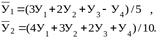 Недостаток методики сглаживания скользящими средними состоит в условности определения сглаженных уровней для точек в начале и конце ряда . Получают их специальными приемами – расчетом средней арифметической взвешенной . Так , при сглаживании по трем точкам выровненное значение в начале ряда рассчитывается по формуле 24 :
