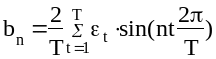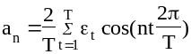 Общее число колебательных процессов , которые можно выделить из ряда , состоящего из Т уровней , равно Т/2. Обычно ограничиваются меньшим числом наиболее важных гармоник . Параметры гармоники с номером n определяются по формулам 36 –38 :