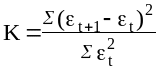 выполняется проверка на автокорреляцию по критерию Дарбина – Уотсона . Если значение К близко к 2 , то данный ряд отклонений оставляют без изменений . Если же К заметно отличается от 2 , то по такому ряду находят параметры уравнения авторегрессии по формулам 42 :