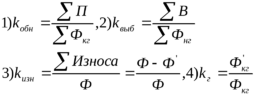 ок-ли состояния и движения ОФ:1)к-т обновления, 2)выбытия,3) износа, 4)годности: