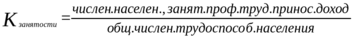 Иногда в числителе численность экон. активного насел-я. В любом случае высок. ур-нь зан-ти свидетельствует о низкой ее эф-ти, т.к. не обеспечивает достаточного ур-ня произв-ти труда и ее оплаты на достойном ур-не.