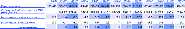 Низкие значения цен акций, наблюдавшиеся в сентябре–октябре 1998 г., отразили по-прежнему высокий уровень рисков как в экономике в целом, так и при проведении взаиморасчетов между участниками рынков.