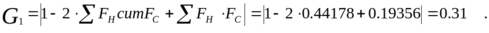 Результаты расчета коэффициента Джини на примере первой децильной группы домохозяйств (наименее обеспеченных)