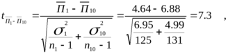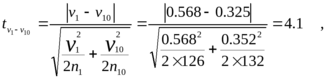 Проанализируем статистическую оценку существенности различий в показателях потребления в сравниваемых группах. Для сравнения средних долей и коэффициентов вариации применяется t-критерий Стьюдента. При этом выдвигается нуль-гипотеза (Н0) о несущественных различиях между показателями, вычисленными по децильным группам. При tфакт < tтабл, = 0,05 и df = n1 + n2 - 2 нуль-гипотеза принимается. При tфакт tтабл нуль-гипотеза отвергается, что позволяет считать различия существенными.