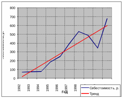 При анализе рядов динамики необходимо учесть тенденцию изменения уровня себестоимости за 1992-2001 гг.