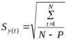 Основным абсолютным показателем колеблемости считают среднее квадратическое отклонение. Если рассматриваемый период является выборкой, по которой делается оценка генеральной величины колеблемости в данном процессе для целей прогнозирования (экстраполяции), то оценку генерального среднего квадратического отклонения вычисляют по формуле: