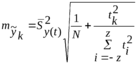 и до уровня в прогнозируемом году yk (l – период упреждения, k-l – база прогноза). При однократном выравнивании для определения параметра линейного тренда – среднегодового абсолютного прироста – средняя ошибка прогноза тренда для года с номером tk, отсчитываемого от середины прогноза, вычисляется по формуле: