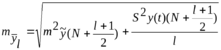 При линейных формах тренда среднего уровня и тренда среднего квадратического отклонения формула средней ошибки прогноза среднегодового уровня выглядит следующим образом: