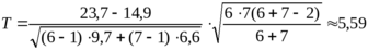 Для этого рассчитаем Т критерий по формуле:
