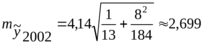 Тогда средняя ошибка прогноза среднегодовой урожайности по формуле (14) равна
