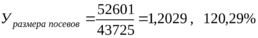 3. Рассчитаем индекс размера посевов по формуле