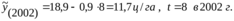 Обозначение времени t в 2002 году будет равно восьми (t(2002) = 8).