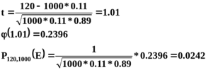 , то есть, равна сумме вероятностей несовместных событий покупки 1000 посетителей конкретного числа пар обуви в пределах от 80 до 120 пар обуви.