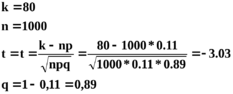 Пример: Найти вероятность того, что 80 из 1000 приобретут мужскую обувь, если вероятность покупки обуви p=0,11 (по данным из наблюдений за предыдущий период).
