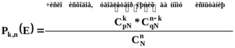 Для вывода функции гипергеометрического распределения проводятся испытания (выборка) по схеме невозвращающегося шара. В этом случае вероятность появления события Е k-раз в n зависимых испытаниях подвергается влиянию не только числа отбираемых единиц n, но и численности всей генеральной совокупности N.