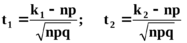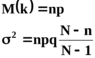 , то есть, зная параметры биномиального распределения всегда можно рассчитать параметры гипергеометрического.