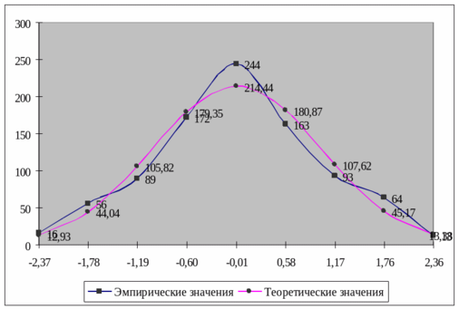 , а показатель степени – стандартное значение отклонений эмпирических данных от среднеарифметических.