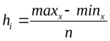 ; где hi – равный в данном случае интервал; x - значение признака; n – количество групп.