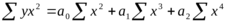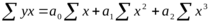 - результативный признак; x – факторный признак; a0, a1, a2… - параметры уравнения (коэффициенты регрессии), которые позволяют рассмотреть среднее значение, т.е. показывают среднее изменение зависимой переменной y от x при изменении независимой переменной x на 1. Параметры уравнения (свободные члены) определяются путем решения системы нормальных уравнений, полученных на основе метода наименьших квадратов: