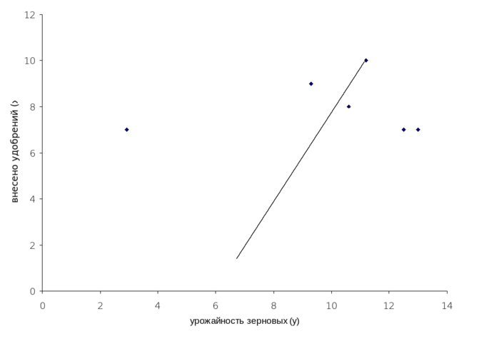 т.е. теснота связи между внесением удобрений и изменением урожайности небольшая, что подтверждает сделанный в пункте 3.2. вывод (где расчет производился по коэффициенту Фехнера).