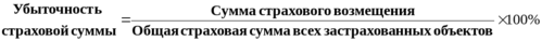 Г – это отношение средней страховой суммы повреждённых или уничтоженных объектов к средней страховой сумме застрахованных объектов.