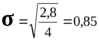 равен отношению среднего квадратического отклонения средней величины к средней величине. Произведём расчёты среднего квадратического отклонения