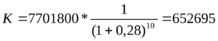 Учитывая¸что каждый год на него будет нарастать 28% годового дохода¸определим современную стоимость этого фонда (до начисления на него процентов).