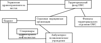 движение финансового потока от территориального фонда ОМС через страховые медицинские организации в медицинские учреждения;