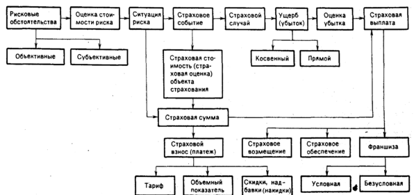 Страхование как экономическая категория включает следующие элементы: рисковые обстоятельства, ситуация риска, стоимость (оценка) объекта страхования, страховое событие, страховая сумма, страховой взнос, страховой случай, ущерб (убыток) страхователя, страховая выплата.