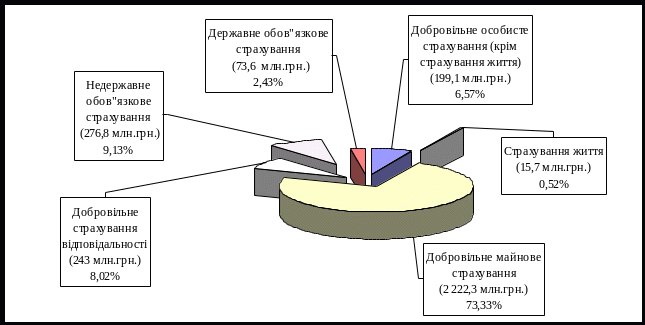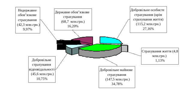 Загальна (валова) сума страхових премій, отриманих за 2001 рік, склала 3 031 млн. грн. У порівнянні з 2000 роком обсяги вказаного показника зросли на 895 млн.грн. (у 1,4 раза). Сума страхових премій, отриманих безпосередньо від страхувальників, за 2001 рік склала 2 510,9 млн.грн., в тому числі від страхувальників-громадян - 317,6 млн.грн.