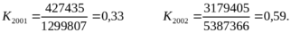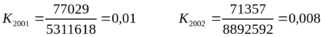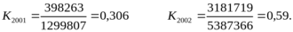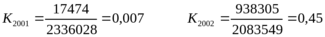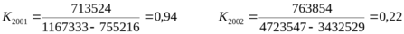 Nобщ2001=643666,66+2821,9=646488,56 Nобщ2002=628949,52+473,55=629423,07