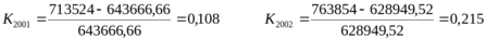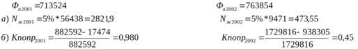 Nж2001= 4105017*0,98*16%=643666,66 Nж2002=8735410*0,45*16%=628949,52