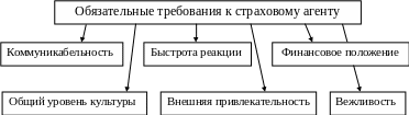 Страховому агенту нередко свойственен некоторый авантюризм, поскольку его заработок зависит от его энергии, умения и удачливости. Работа в качестве страхового агента требует от кандидата глубоких знаний в области предлагаемых видах страхования, психологии людей, умения поддерживать беседу и располагать к себе собеседника. Обязательными требованиями к кандидату на эту работу являются 1)коммуникабельность – умение легко, доброжелательно и непринужденно общаться с людьми разных профессий, возрастов и социального статуса; 2) быстрота реакции, т.е. умение быстро, с учетом конкретной ситуации ответить на любой вопрос; 3) финансовое положение – отсутствие претензий со стороны налоговой инспекции в части правильности декларирования своих доходов и их источников; 4) общий уровень культуры – неформальный подход к профессии, слежение за своей речью; 5) внешняя привлекательность и отсутствие вредных (неприятных) привычек; 6) вежливость.