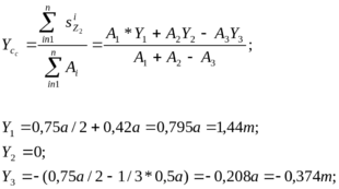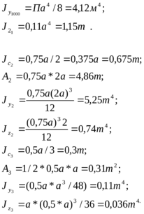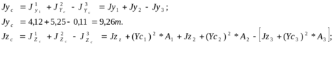 Смещению центров тяжести С1 , С2, С3 от осей Yc и Zc показано на рис. 1.2. Численные значения приведены выше. Значения моментов инерции составляющих фигур относительно собственных осей приведены в разделе 1.