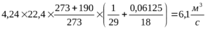 ρср = [29∙(105–9687,5)+18∙9687,5]∙273/(22,4∙105∙(273+190)) = 0,735 кг/м3;