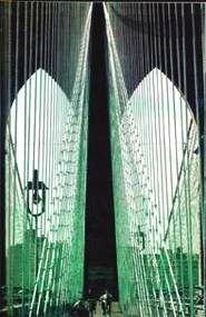 Самым же знаменитым в мире висячим мостом является американский Бруклинский мост через реку Ист Ривер в Нью-Йорке. Строительство этого моста велось целых 16 лет и было закончено в 1883 г. Тогда он был рекордсменом: имел самый длинный пролет – 486 м и огромный вес – 15 тыс. т. Бруклинский мост – двухуровневый, его первый уровень отдан под шестиполосный автомобильный проезд, а верхний уровень – под пешеходную и велосипедную деревянные дорожки. При строительстве Бруклинского моста впервые в качестве несущей конструкции были применены стальные канаты, что было удивительно для современников. И даже через 50 лет восхищенный поэт В. Маяковский после своего посещения Нью-Йорка назвал его «борьбой за конструкции вместо стилей, расчетом суровым гаек и стали». Некоторое время Бруклинский мост считался «мостом самоубийц», так как с него бросались в воду желавшие покончить с жизнью, потеряв работу во времена великой депрессии. Однако даже подобная недобрая слава не мешает мосту оставаться удивительным примером изобретательной инженерной мысли и притягивать толпы туристов.