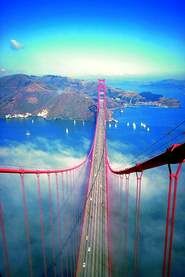 На востоке США, в Калифорнии, находится еще один знаменитый на весь мир висячий мост – «Золотые ворота», построенный в 1937 г., то есть на год раньше московского Крымского моста. Он соединяет два берега одноименного пролива, являющегося входом в самую большую естественную гавань мира – Сан-Франциско. Мост поднят над водой на 250 м, и под ним свободно проходят океанские лайнеры. Это уникальное архитектурное сооружение можно назвать одним из новых чудес света. Ведь при проектировании его конструкции не использовалась никакая вычислительная техника, а все расчеты производились под руководством инженера Й. Штрауса при помощи арифмометров и логарифмических линеек. Архитектор моста И. Морроу использовал при разработке его дизайна элементы стиля арт-деко. С самого начала мост был выкрашен оранжево-красной краской, ведь в состав именно этих красителей входит свинцовый компонент, который защищает сталь от ржавчины. Жители Сан-Франциско шутят, что на мосту постоянно ведутся реставрационные работы, потому что, когда маляры доходят до конца моста, его начало уже снова нуждается в покраске.