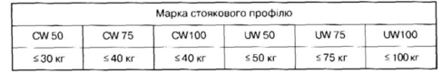 Рекомендовані значення маси дверного полотна в залежності від марки стоякового профілю