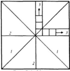 1 - діагоналі;2 - центральні вісі;3 - напрямки приклеювання