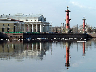 Стрелка Васильевского острова уже два столетия остается любимым местом праздников и прогулок петербуржцев. Издалека, с воды и с противоположных берегов Невы ансамбль Биржи выглядит великолепной и торжественной панорамой, которая стала одним из символов Санкт - Петербурга.