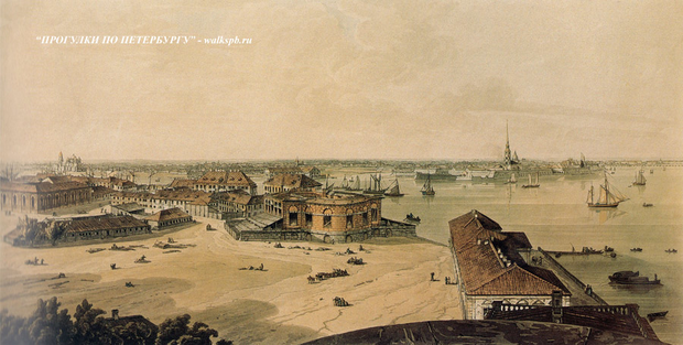 Стрелка Васильевского острова стала одним из излюбленных мест прогулок жителей Петербурга. У причалов теснились парусные суда, нагруженные всевозможными товарами. Набережные заполняла пестрая толпа людей, говоривших на разных языках. Шум и гам портового города не смолкал здесь с весны до осени.