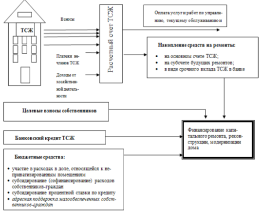 у товарищества собственников жилья нет своего имущества, которое можно было бы использовать в качестве гарантии возврата кредита, а собственники квартир не хотят закладывать свои квартиры в обеспечение кредита товарищества или давать поручительства за других собственников помещений, поэтому необходимы меры, обеспечивающие доступность кредитов для собственников квартир (через ТСЖ или управляющие организации) и снижающие риски банков.