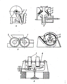 в) для середнього і дрібного дроблення глинистих матеріалів і видалення каміння – з одним гладким і іншим рифленим валяннями і з валяннями, що мають гвинтову поверхню.