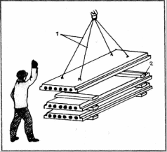 Переконавшись в надійності стропування, він відходить у безпечну зону і дає команду підняти панель. Машиніст крана плавно піднімає плиту.