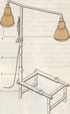 1 - розсувна рама; 2 - телескопічна стійка; 3 - провод; 4 - плафон