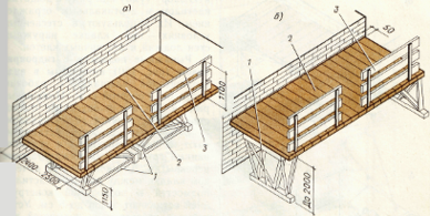 ГРАНИЧНА ВИСОТА КЛАДКИ, ЩО ВИКЛАДАЄТЬСЯ КОНСТРУКЦІЯ ПОДМОСТЕЙ МУЛЯРЕМ 1 - опори; 2 - робочий настил; 3 - бортова огорожа