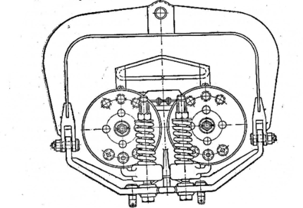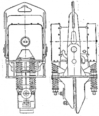 Общий вид одного из вибраторов с направленной возмущающей силой, дан на рис. 8. Характерной особенностью этого вибратора является наличие только верхних пружин; поэтому он работает только с предварительным натяжением последних. Техническая характеристика этого вибромолота следующая: