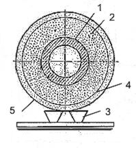 1-трубопровод, 2-теплоизоляционный слой, 3-крепежные детали, 4-пароизоляция, 5-покровный слой.